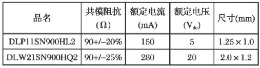 在研究這種方法的過程中,用一根3米長線纜連接兩個HDMI設備,測試從1~5GHz的輻射噪音。表1列出了幾種不同型號共模扼流圈的規格及其參數,它們分別是同樣尺寸(1.25×1.0mm)的DLP11SN900HL2和DLP11SA900HL2,以及2.0×1.2mm尺寸的DLW21SN900HQ2。