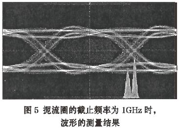 圖5所示的是,當一個截止頻率大概是1GHz的共模扼流圈被采用時,HDMI信號波形產生的情況。這時,信號波形失真嚴重,已經不能滿足HDMI標準了。在研究了波形和共模扼流圈的截止頻率之後,可以發現,隻有截止頻率為3.5GHz或更高的共模扼流圈,才能保證有足夠的周邊來傳輸12位的深色信號。但是,工程師們應該注意到,因為隨著壓敏電阻的量值和安裝位置的不同,都會影響到靜電屏蔽裝置的波形傳輸。