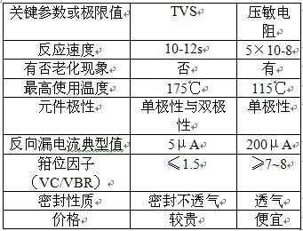 - TVS與壓敏電阻的參數比較