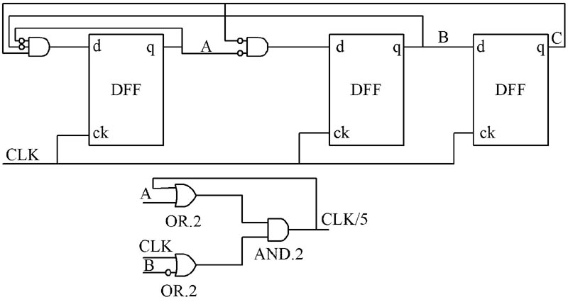 圖1 5 分頻電路邏輯結構