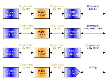 目mu前qian,有you關guan電dian子zi設she備bei使shi用yong和he設she計ji的de安an全quan規gui定ding層ceng出chu不bu窮qiong,使shi電dian流liu隔ge離li器qi幾ji乎hu成cheng為wei所suo有you數shu據ju采cai集ji和he傳chuan輸shu係xi統tong中zhong的de必bi需xu。避bi免mian控kong製zhi係xi統tong低di壓ya電dian路lu在zai電dian場chang中zhong遭zao受shou潛qian在zai的de傳chuan感gan器qi和he傳chuan動dong器qi組zu件jian高gao壓ya損sun害hai的de一yi種zhong方fang法fa,就jiu是shi使shi用yong數shu字zi隔ge離li器qi。