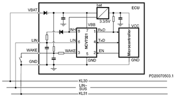 圖2:基於安森美半導體NCV7321的典型LIN電路