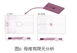 圖7為實際優化後使用的h橋母線排結構,在考慮到電流路徑和電容端子方向及其他優化方式後,使用有限元分析軟件ansoft對其表麵電流分布進行了仿真。仿真結果如圖8所示。由圖8中(zhong)可(ke)以(yi)看(kan)出(chu),除(chu)母(mu)線(xian)排(pai)開(kai)孔(kong)處(chu)由(you)於(yu)渦(wo)流(liu)效(xiao)應(ying)導(dao)致(zhi)的(de)電(dian)流(liu)分(fen)布(bu)不(bu)均(jun)勻(yun)以(yi)外(wai),整(zheng)個(ge)母(mu)線(xian)排(pai)的(de)電(dian)流(liu)分(fen)布(bu)比(bi)較(jiao)均(jun)勻(yun),由(you)此(ci)造(zao)成(cheng)的(de)雜(za)散(san)電(dian)感(gan)經(jing)過(guo)有(you)限(xian)元(yuan)軟(ruan)件(jian)直(zhi)接(jie)提(ti)取(qu)結(jie)果(guo)為(wei)21nh,可以滿足工業要求。