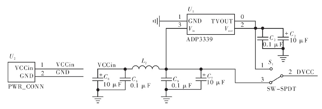 chuanganqijiediantijiweixiao,tongchangxiedainengliangyouxiandedianchi。nenglianggongyingmokuaizaiwuxianchuanganqijiedianzhongzhiguanzhongyao,weichuanganqijiediangebufentigongnengliang。xuyaochangshijianshujucaijidechuanganqiyoudexuyaotaiyangnengdengfangshilaiweichijiediandezhengchangyunzhuan。jiediandegebufenyexuyaojingxinsheji。jiedianweichuliqidegongzuodianyawei1.8~3.6 V,無線射頻芯片工作電壓為2.1~3.6 V,Flash供電電壓為2.7~3.6 V,USB轉換芯片由USB供電。因此電源可以選用3 V紐扣電池供電,有效減少了節點的大小。另外USB也可以作為供電源,同時作為編程電源,電源單元如圖2所示。LC濾波單元對交流電具有較好的濾波效果,同時又不會降低直流輸出電壓。低壓差的穩壓器ADP3339保證了電源較好的穩壓性。