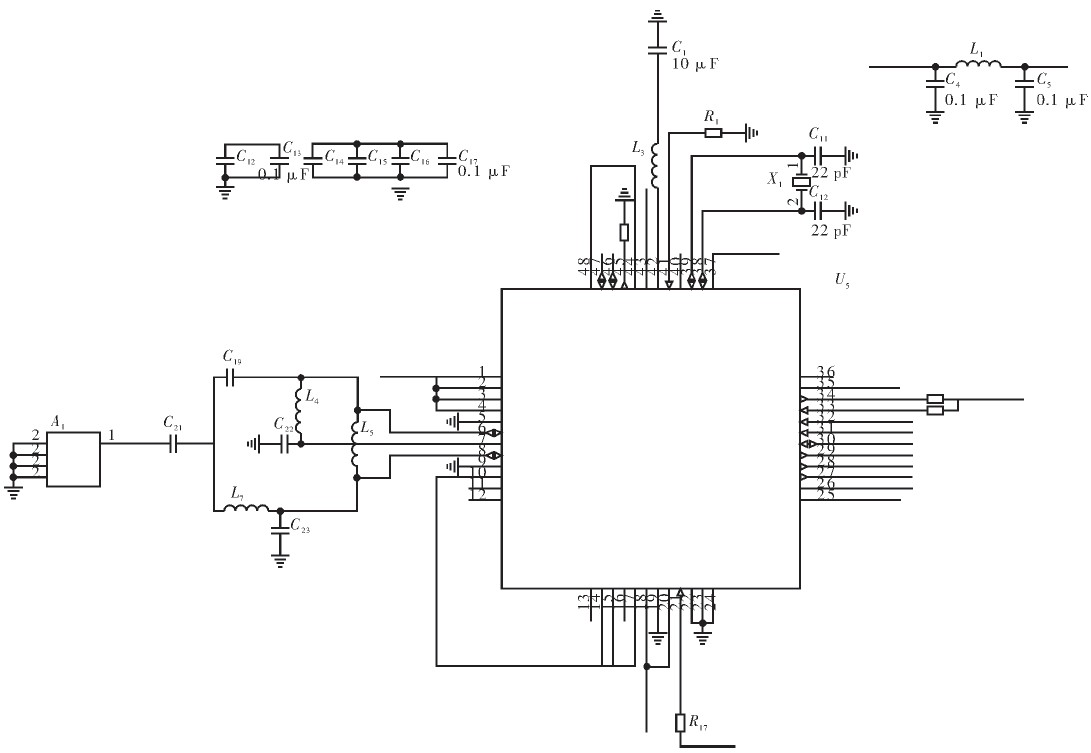 圖3中無線射頻模塊的外圍電路采用CC2420手(shou)冊(ce)提(ti)供(gong)的(de)典(dian)型(xing)應(ying)用(yong)電(dian)路(lu)的(de)器(qi)件(jian)數(shu)值(zhi),這(zhe)樣(yang)保(bao)證(zheng)了(le)芯(xin)片(pian)能(neng)工(gong)作(zuo)在(zai)正(zheng)常(chang)狀(zhuang)態(tai)。另(ling)外(wai)為(wei)達(da)到(dao)最(zui)優(you)性(xing)能(neng),必(bi)須(xu)使(shi)用(yong)電(dian)源(yuan)去(qu)耦(ou),去(qu)耦(ou)電(dian)容(rong)和(he)電(dian)源(yuan)過(guo)濾(lv)的(de)設(she)置(zhi)和(he)大(da)小(xiao)對(dui)於(yu)在(zai)應(ying)用(yong)中(zhong)獲(huo)得(de)最(zui)優(you)性(xing)能(neng)起(qi)著(zhe)關(guan)鍵(jian)作(zuo)用(yong),TI提供一個緊湊的參考設計,必須嚴格按照該設計進行。同時增加數字、模擬電源采用電容濾波。CC2420需要一個16 MHz的參考時鍾用於傳輸速率為250 kbit·s-1deshujushoufa,cankaoshizhongkeyilaiziwaibushizhongyuan,yekeyiyouneibujingtizhendangqichansheng,zhelicaiyongneibujingtizhendangqichanshengdefangshi。tianxianzukangpipeizhiguanzhongyao,weihuodejiaohaodefashegonglv,zaiyuanyoujichushangduibufendianrong、電感進行了適當的調整。CC2420與微控製器的通信通過4線SPI總線實現(SI、SO、SCLK、CSn),通過控製FIFO和FIFOP管腳接口狀態可以使芯片工作在發射或接收模式,另外CCA用於空閑信道評估,SFD用於控製時鍾或定時信息的輸入。