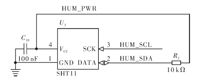 SHT11電源供電要求為2.4~5.5V,電源和時鍾信號均由微處理器提供,數據線管腳三態輸出,因此需要外界一個上拉電阻將信號拉高。