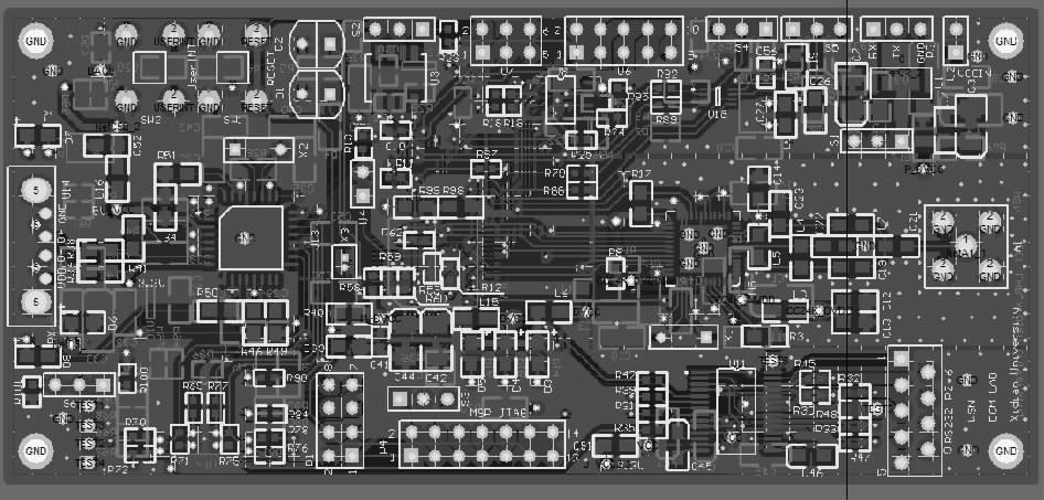 電dian路lu板ban根gen據ju不bu同tong的de標biao準zhun有you不bu同tong的de分fen類lei,在zai設she計ji中zhong大da多duo數shu根gen據ju板ban的de數shu目mu分fen類lei,在zai電dian氣qi連lian接jie關guan係xi複fu雜za的de電dian路lu板ban設she計ji中zhong,雙shuang麵mian板ban難nan以yi滿man足zu電dian路lu布bu線xian的de要yao求qiu,這zhe時shi就jiu必bi須xu考kao慮lv使shi用yong多duo層ceng板ban。本ben節jie點dian采cai用yong4層板,頂層主要是USB模塊和無線模塊,底層為微處理器模塊,內部層為電源層和地層。設計結果如圖7所示。
