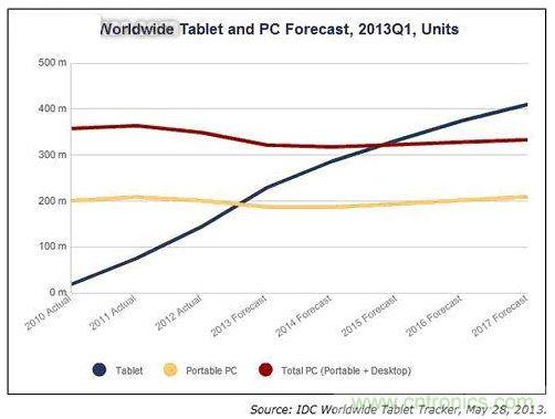 當前消費類電子產品的主要產品細分類型如下:配有3-5英寸屏幕的智能手機;5-8英寸的超級手機或平板手機;8-11.6英寸的平板電腦;11.6-15.6英寸的超極本;以及最大可達17英寸的筆記本電腦。在其5年的產品曆史中,平板電腦被認為是升溫最快的移動設備,根據預測,到2015年其銷量有望趕超個人電腦。因此,PC供應商開始將重心轉移至用戶界麵友好的觸摸設計上,比如具有與筆記本電腦或平板電腦相同功能的可翻轉筆記本電腦。