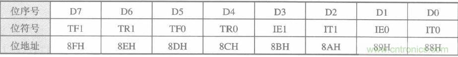 定時器/計數器控製寄存器在特殊功能寄存器中,字節地址為88H,位地址(由低到高)分別為88H~8FH,該寄存器可進行位尋址。TCON寄存器用來控製定時器啟,停,標誌寄存器溢出和中斷情況。單片機複位時TCON全部被清零。各位被賦不同值的含義如下: