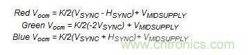 AD8147根據以下公式提供額外的特性,以編碼TTL邏輯電平、三路輸出共模電壓(VOCM)上的水平和垂直同步脈衝信號:
