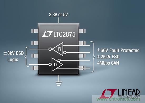 淩力爾特公司推出高壓容限CAN收發器LTC2875 提供±60V故障保護