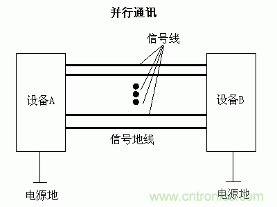 並行通訊中,基本原理與串行通訊沒有區別。隻不過使用了成倍的信號線路,從而一次可以傳送更多bit的信號。