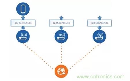 我wo們men可ke以yi試shi想xiang一yi下xia,當dang我wo們men每mei天tian搭da乘cheng公gong共gong交jiao通tong穿chuan行xing了le整zheng個ge城cheng市shi,當dang我wo們men在zai商shang場chang購gou物wu或huo是shi和he朋peng友you在zai餐can廳ting聚ju餐can的de時shi候hou,你ni的de智zhi能neng手shou機ji可ke以yi幫bang助zhu你ni付fu費fei、點單和導航。如果你的智能手機接入到網絡熱點當中進行互聯網訪問的時候,它就可能會在這一係列的過程當中來廣播其MAC地址。我們前麵提到了MAC地址在網絡通信當中的唯一性,你又是智能手機的使用者,那麼這部智能手機的MAC地di址zhi從cong某mou一yi角jiao度du來lai講jiang,就jiu代dai表biao了le你ni在zai無wu線xian通tong信xin過guo程cheng當dang中zhong的de身shen份fen認ren證zheng。因yin此ci就jiu存cun在zai這zhe樣yang一yi種zhong可ke能neng,一yi些xie懷huai有you惡e意yi的de人ren通tong過guo一yi些xie其qi他ta的de無wu線xian通tong信xin設she備bei,可ke以yi獲huo取qu你ni的de智zhi能neng手shou機ji進jin行xing數shu據ju交jiao互hu時shi的deMAC地址並且記錄了MAC地址出現的日期、時間和相關的位置,那麼你的行蹤就可以被監控,如下圖所示。