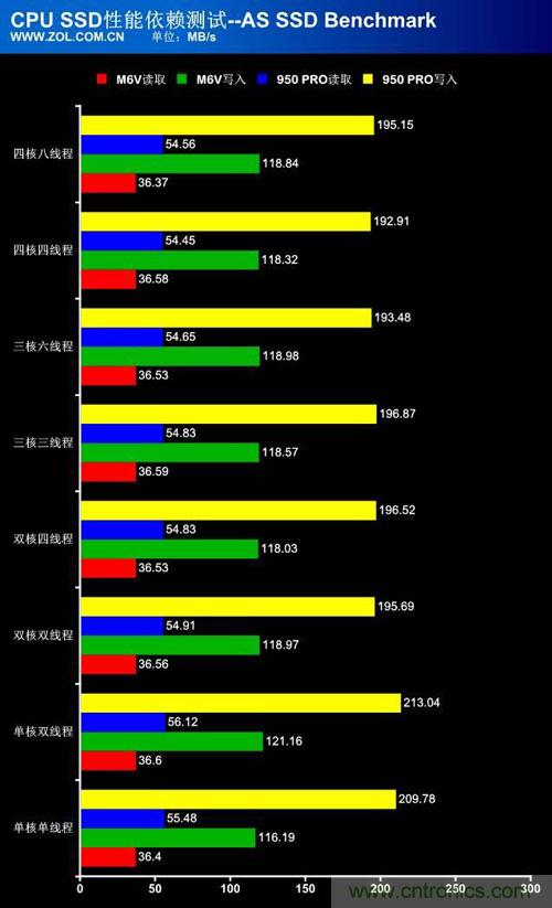 CPU對SSD 4K讀寫性能的影響,一方麵因為目前的硬件設計和操作係統無法很好的利用CPU的多線程特性來發掘出SSD的潛能,另一方麵4K小文件的讀寫涉及到龐大的數據取址、讀取和寫入的操作,對於CPU自然提出了更高的要求,即使是SSD也隻是提供了更快的數據通道形式,但是數據任務量並不會改變,所以未來要想獲得更好的數據存儲體驗,除了不斷提升SSD性能,也請不要忽視了CPU的性能以及多線程的開發。