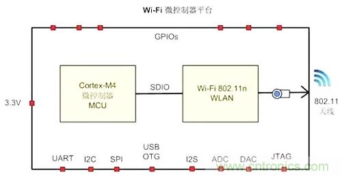 微控製器是家居智能化的關鍵部件。MCU和Wi-Fi是最基本的兩個元素。以某一Wi-Fi微控製器為例,它是內置全功能微控製器的單芯片SoC,支持802.11n Wi-Fi。
