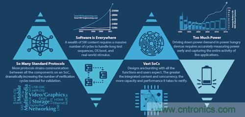 設計規模更大的協議集成會增加複雜度和尺寸。此外,各種功能、多處理器和嵌入式軟件也會增加其複雜度和尺寸。消費者希望產品能夠處理更多功能。這些設備必須提供集成的數字、音頻、語音和數據功能,且始終保持運行和連接狀態。