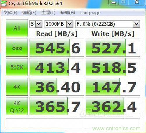 HyperX Savage 240G SSD接在原生的SATA3.0接口上的測試成績完勝SATA2.0。在SATA2.0接口上,持續讀寫速度僅270 MB/s / 264MB/s,而相對的,SATA3.0高達545 MB/s /527MB/s,很明顯受到接口理論傳輸性能的限製。另外,4K隨機讀寫方麵也受到不少的影響。