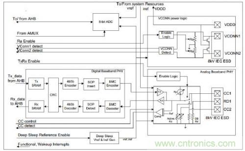 另外,CCG2采用了賽普拉斯的典型PSoC架構(PSoC Programmable System on Chip),在一個MCUneihezhouweijichenglefengfudekepeizhidemoniheshuziwaiweiqijianzhenlie,liyongxinpianneibudekebianchenghulianzhenlie,yonghukeyizhiguanyouxiaodigenjushijixuqiupeizhixinpianshangdemoniheshuziziyuan,shixiandingzhihuadeqianrushixitong。yigePSoC器件最多可集成上百種外設功能,從而幫助客戶節約設計時間和板上麵積,降低了功耗和係統成本。