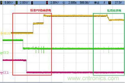 圖6.基於Cypress CCG2方案的PD協議的充電器供電協商波形
