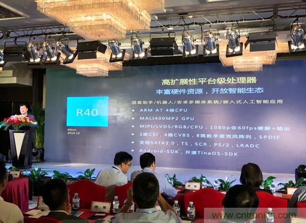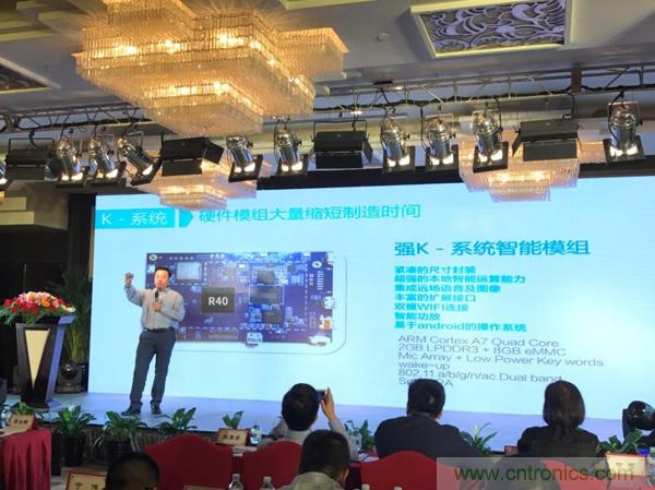 隨後,李智展示了全誌最具擴展性的智能硬件開放平台R40係統,R40有遠場語音交互、多顯示接口和音視頻編解碼等優勢,非常適用於語音助手、機器人、定製化的安卓多媒體係統產品開發。