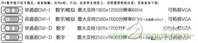 DVI接口是數字信號接口,信道帶寬和抗幹擾能力比之VGA有明顯的提升,DVI接口可以進一步分為三種,DVI-A、DVI-D、DVI-I。DVI-A可以理解為VGA換湯不換藥的變種,目前基本銷聲匿跡,而主流的DVI-D和DVI-I又有單通道和雙通道之分,信道帶寬兩倍差距。