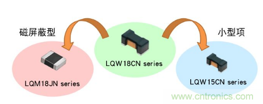 LQW15CN係列是LQW18CN係列的小型產品。此外還提供磁屏蔽型LQM18JN係列新產品。