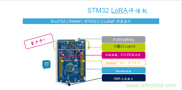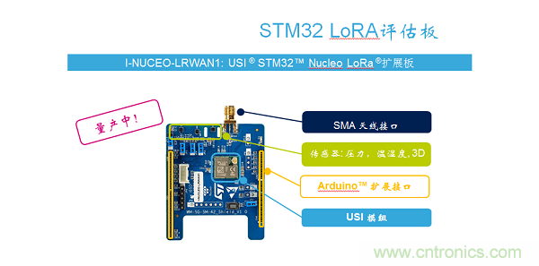 I-NUCEO-LRWAN1是支持STM32 Nucleo或Arduino開發板的擴展板,雖未通過LoRa1認證,但隻要插到主板上,即可立即著手開發全功能的LoRa/FSK/OOK(頻移鍵控/二進製開關鍵控)連接應用。
