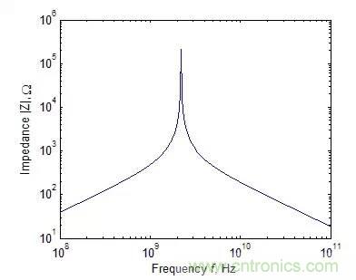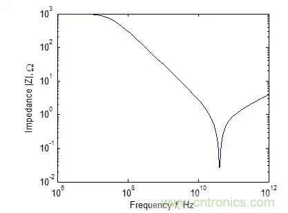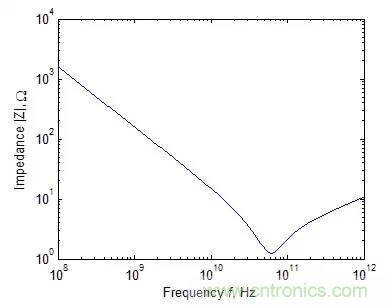 一個典型的1pF電容阻抗絕對值與頻率的關係