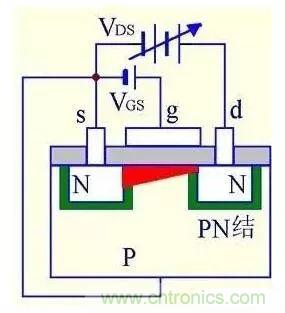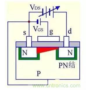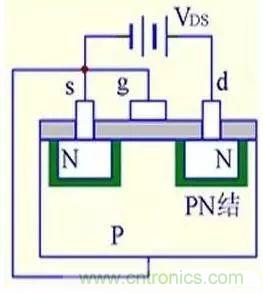 (1) VGS=0時,不管VDS極性如何,其中總有一個PN結反偏,所以不存在導電溝道。