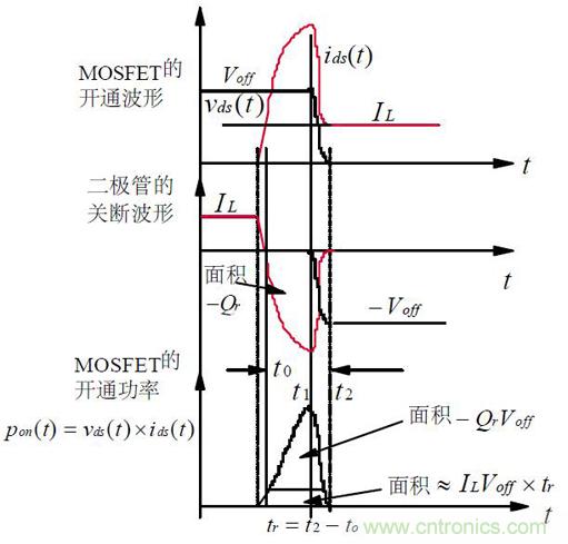 -- 在 t0 前,MOSFET 工作於截止狀態,t0 時,MOSFET 被驅動開通;