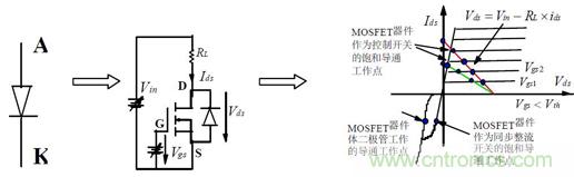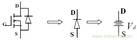 即內部二極管的等效電路,可用一電壓降等效,此二極管為MOSFET 的體二極管,多數情況下,因其特性很差,要避免使用。