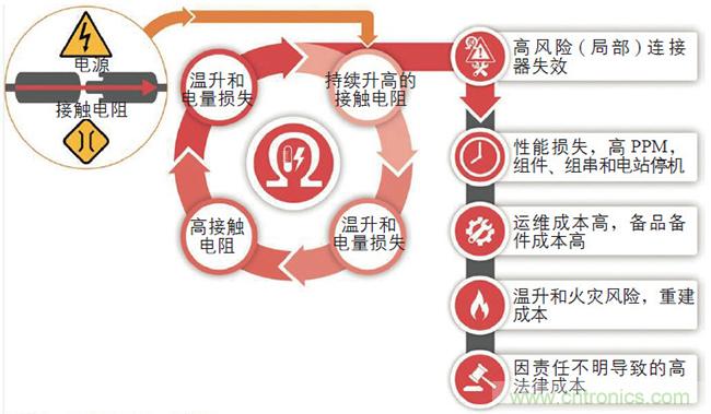 電dian站zhan的de盈ying利li能neng力li與yu選xuan擇ze高gao質zhi量liang的de部bu件jian息xi息xi相xiang關guan。業ye主zhu在zai光guang伏fu連lian接jie器qi上shang節jie省sheng資zi金jin,並bing不bu是shi一yi種zhong明ming智zhi的de做zuo法fa。因yin為wei,不bu注zhu重zhong質zhi量liang,通tong常chang意yi味wei著zhe後hou續xu的de高gao損sun失shi和he風feng險xian,而er這zhe些xie本ben可ke避bi免mian。光guang伏fu連lian接jie器qi的de低di接jie觸chu電dian阻zu及ji長chang期qi可ke靠kao性xing,能neng夠gou保bao障zhang電dian站zhan高gao效xiao和he安an全quan運yun行xing。而er持chi續xu升sheng高gao的de接jie觸chu電dian阻zu會hui導dao致zhi光guang伏fu項xiang目mu的de安an全quan風feng險xian大da幅fu提ti高gao,降jiang低di電dian站zhan運yun行xing效xiao率lv。需xu要yao指zhi出chu的de是shi,各ge種zhong不bu同tong的de風feng險xian因yin素su是shi密mi切qie相xiang關guan的de,如ru圖tu1 所示。