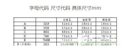 ② 表示鉭電容的尺寸大小,有A、B、C、D、E、Y、V 六種尺寸