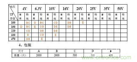 ④ 表示電容的耐壓,指在85℃時額定直流電壓,鉭電容的耐壓範圍從4V---50V