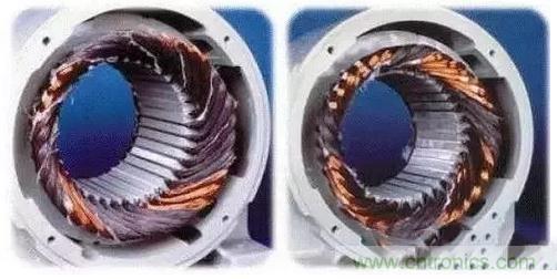 上圖為4極電機缺相燒壞圖片,電機線圈對稱燒壞就是缺相燒壞,星形接法缺相燒的話,2極電機隻有2組線圈是好的,4極電機對稱燒隻有4組線圈是好;三角形連接缺相燒的話,2極電機對稱燒2組線圈,4極電機對稱燒4組線圈。