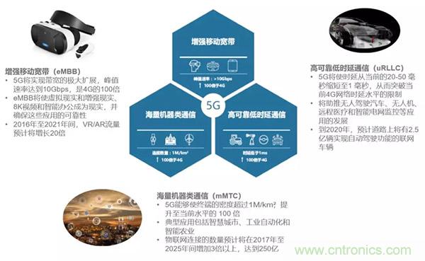 未來5G將應用在增強移動寬帶(eMBB)、高可靠低時延通信(uRLLC)、海量機器類通信(mMTC)三大場景。而這需求的是非常寬的帶寬,非常高傳輸的速率,非常可靠的低延時的連接,另外,還需要海量機器類型連接的網絡。
