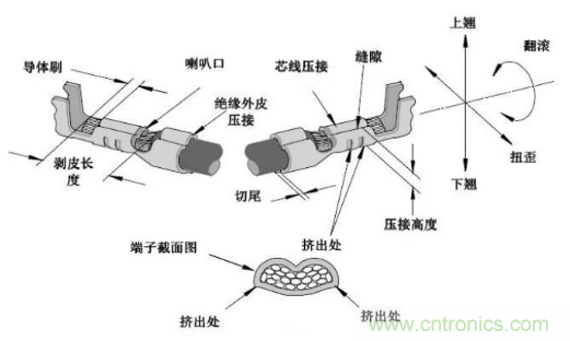 插入時要留意長短深度。線纜插入過短容易導致端接達不到規定的拉拔力,因為線纜與端子之間的金屬間接觸減少了;而er線xian纜lan插cha入ru過guo深shen則ze會hui縮suo短duan連lian接jie器qi的de使shi用yong壽shou命ming。以yi車che針zhen壓ya接jie為wei例li,當dang第di一yi個ge窗chuang口kou可ke以yi觀guan察cha到dao金jin屬shu線xian芯xin,第di二er個ge窗chuang口kou可ke以yi觀guan察cha到dao線xian纜lan外wai皮pi時shi,表biao示shi線xian芯xin的de位wei置zhi是shi剛gang好hao的de。