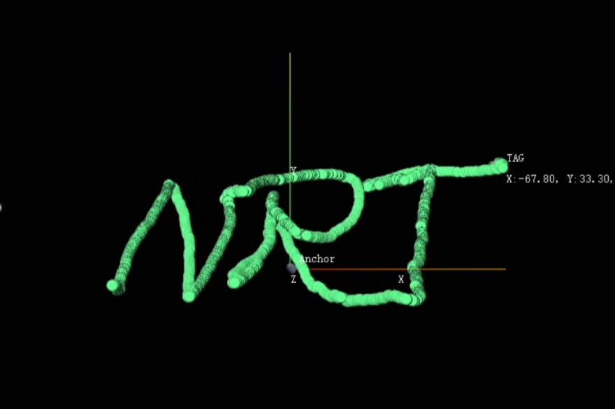 單點測角的誤差方差從1度縮小到0.5度左右,同時實現全空間測角和定位。實驗中可以通過位移精確的寫出文字,如下圖。