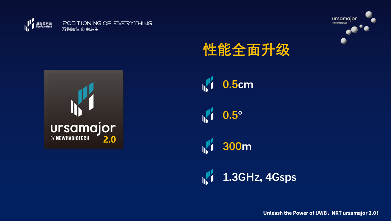 作為一家專注於無線通信技術芯片領域的先驅企業,紐瑞芯始終致力於提供最優質、最高效的產品和解決方案。紐瑞芯在與合作夥伴密切合作的過程中,發現市場對UWB技術性能提升越來越急迫,且其應用的範圍正在不斷延伸,場景越發豐富。這次發布的NRT ursamajor 2.0,是紐瑞芯深度挖掘了這些需求痛點,對現有UWB技術產品進行優化和升級後的成果,旨在提供更加精確、穩定、安全的定位通信服務。——Unleash the power of UWB!