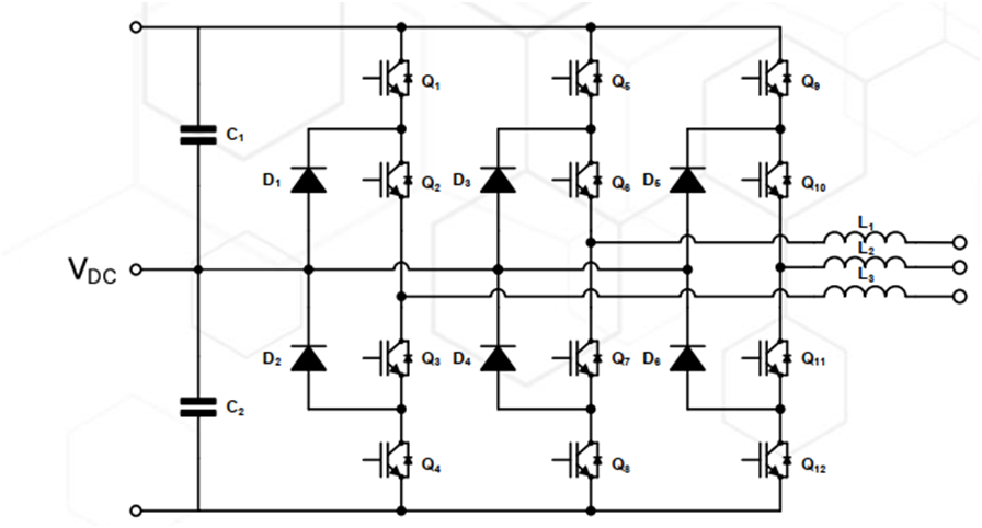 三電平I-NPC和三電平ANPC是電源轉換係統(PCS) 中常見的雙向拓撲結構, 可滿足輸出功率不斷增長的需求。 與兩電平拓撲相比, 三電平拓撲需要更多的元器件、 驅動信號以及更複雜的控製結構。 但其優勢也十分明顯:三電平結構能夠有效降低功率損耗和電流紋波(由於所承受電壓減半) , 並具有更好的抗電磁幹擾(EMI) 性能。