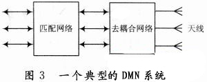 為了提高天線的輻射效率,學者們提出了DMN技術,即在多個天線的輸入端先加耦合器以去掉天線之間的耦合,然後加匹配網絡,如圖3所示。文獻對這種方法進行了詳細論述,並闡述了用S參數分析正交模的方法。下麵對一個二端口網絡的天線進行S參數的分析。