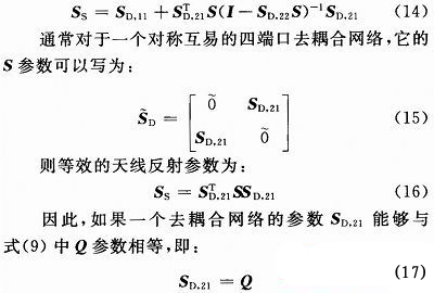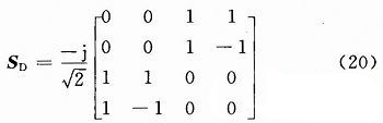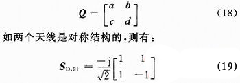 對於一個雙天線係統,應該有兩個正交模同時存在,去耦合網絡是一個四端口網絡,正交輻射矩陣可以寫為: