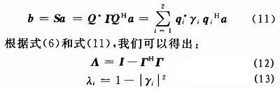 與輻射功率相對的是反射功率。根據(5)式及厄米特矩陣的性質,如果Q可以將H化為對角矩陣,則S也可以化為對角矩陣。有: