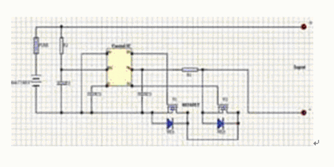---此保護回路由兩個MOSFET和一個控製IC外加一些阻容元件構成。控製IC負責監測電池電壓,並控製兩個MOSFET的柵極,MOSFET在電路中起開關作用,分別控製著充電回路與放電回路的導通與關斷,fuse為熔斷器起二級保護,C2為延時電容,該電路具有過充電保護、過放電保護、過電流保護與短路保護等功能。