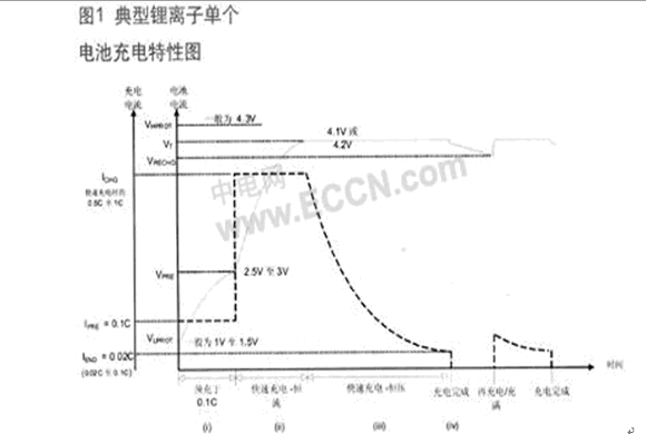 如圖1所示,典型充電周期分為預充,快速充電(恒流),快速充電(恒壓)以及充電終止4個階段。單個鋰離子電池的典型滿充周期為3小時。VLPROT和VHPOT是高低保護電壓發閾值,適用於具備內部保護電路的電池。