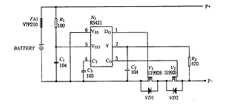 鋰離子電池保護電路包括過度充電保護、過電流/ 短路保護和過放電保護等,該電路就是要確保這樣的過度充電及放電狀態時的安全,並防止特性劣化。它主要由集成保護電路IC、貼片電阻、貼片電容、場效應管(MOSFET) 、有的還有熱敏電阻(NTC) 、識別電阻( ID) 、保險絲( FUSE) 等構成。其電路圖如圖1所示。