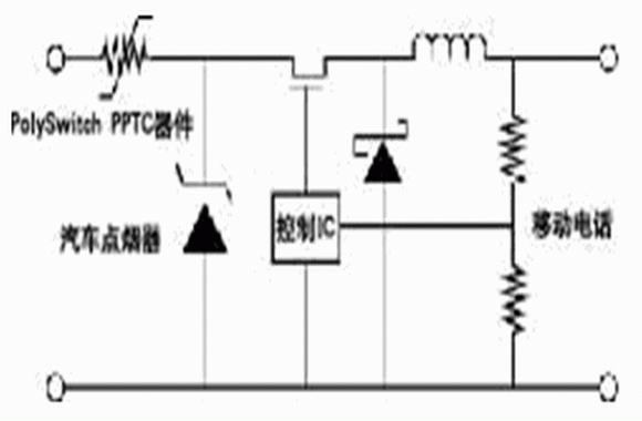 (2)轉換器出現故障。如果轉換器或起控製作用的集成電路出現故障,造成短路,這時PPTC保護器件進入高阻抗狀態,保護汽車線路及熔斷絲。