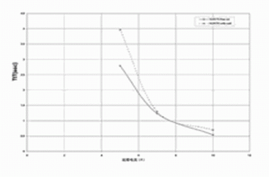 圖3 所示為室溫下,將組件放在接上電池的溫度接點上TtT使溫度轉換係數增加的結果。由此可見, 緊密接上電池的溫度接點在邊緣增加TtT,但隻有在故障電流時低於10A。