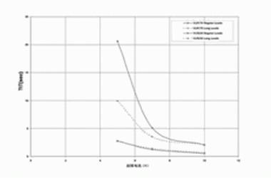 合此式,得出從Ta 到 TSw 動作時間。此式的重要性在於一已知的起始阻抗低切換溫度聚合物PTC組件,在故障期間提供更快速的動作時間,見圖2。當組件接近切換溫度時,該組件的阻抗增加,因此所產生的熱更具效率;切換溫度較低,因此在較短時間內就能達到所需的溫度變化。