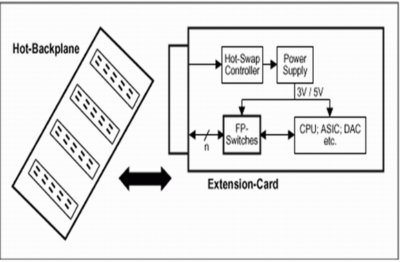 除了一些典型應用以外,例如在ATE和工業設備中作為模擬輸入的保護,這些低電壓、guzhangbaohuxingkaiguanhaikeyizaihenduoqitayingyongzhongyonglaijianhuashejihejiejuebanshangkongjianbuzudewenti。julilaijiang,weilebimianqieduanzhenggeshebeijixiangdedianyuan,xuduoyingyongyaoqiunenggouxiangyigedaidiandedibancharukuozhanka。jinguankeyiyongMAX4271這樣的熱插拔控製器來限製卡上的浪湧電流,但其信號線的保護並不容易。當你將板卡插入底板時,底板的數據總線采用5V TTL電平進行通信,這時卡上的數字IC (微控製器,ASIC等)就有可能在5V電源接通前在其輸入端“看到”5V電壓。前麵已經提到,這種情況會導致鎖定或板卡損壞。